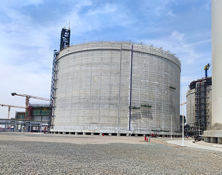 北燃天津南港LNG應(yīng)急儲備項目的薄膜型LNG儲罐是目前全球最大的陸上LNG薄膜罐,是為北京市提供安保用氣、加速京津冀一體化的重點(diǎn)項目,我司承攬此項目二、三階段共計六臺薄膜罐的防潮層施工工作